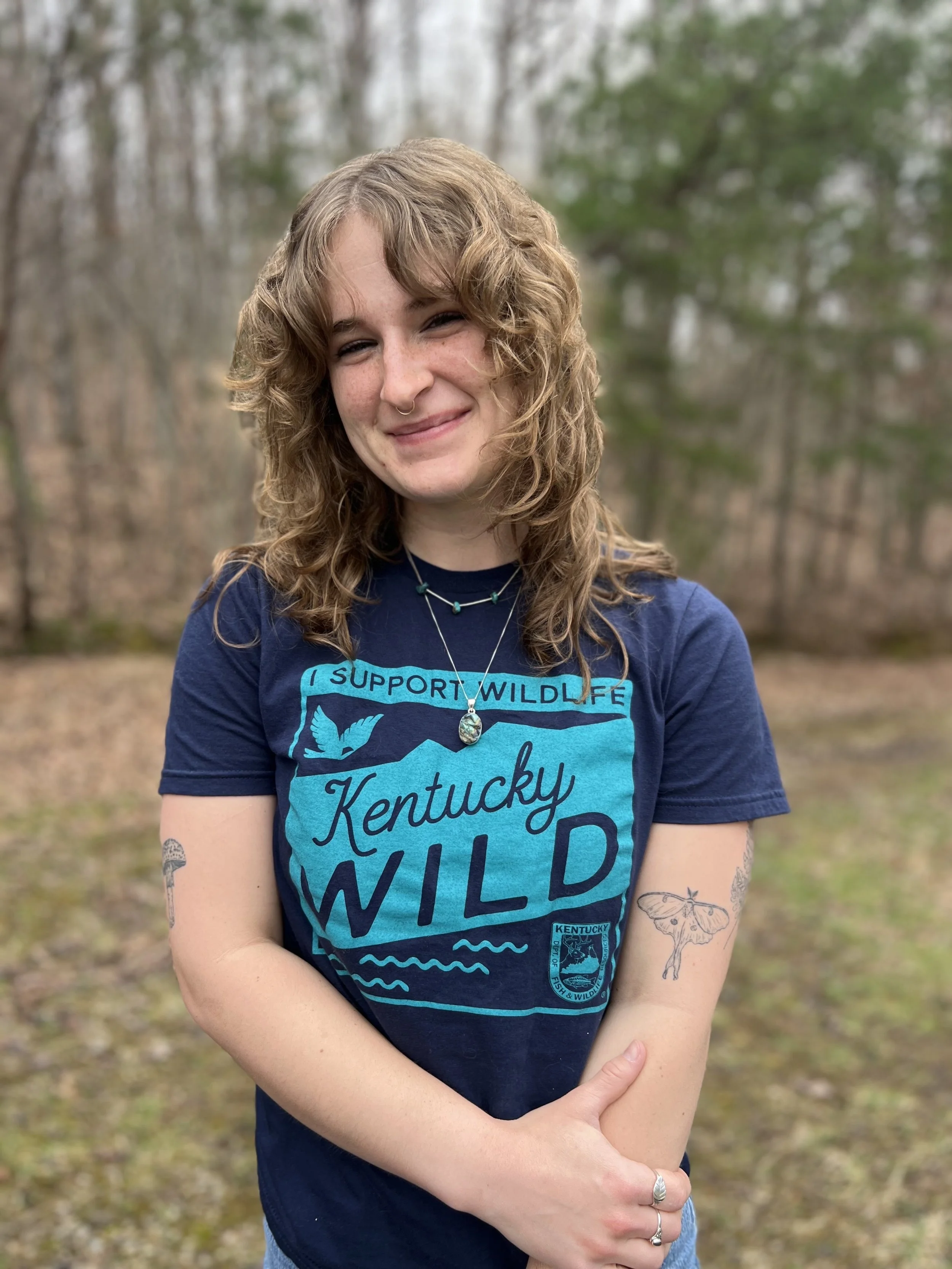 Kendra holds a Bachelor's degree in Recreation and Parks Administration from Eastern Kentucky University, with certificates in Environmental Education and Environmental Science. She grew up near the Red River Gorge, where she spent much of her childhood climbing trees, playing in the creek, and hiking with her family. She has always felt most like herself when outdoors, which spurred her desire to build a career around nature. She's passionate about using her experiences and knowledge to help kids build a lasting relationship with the environment.